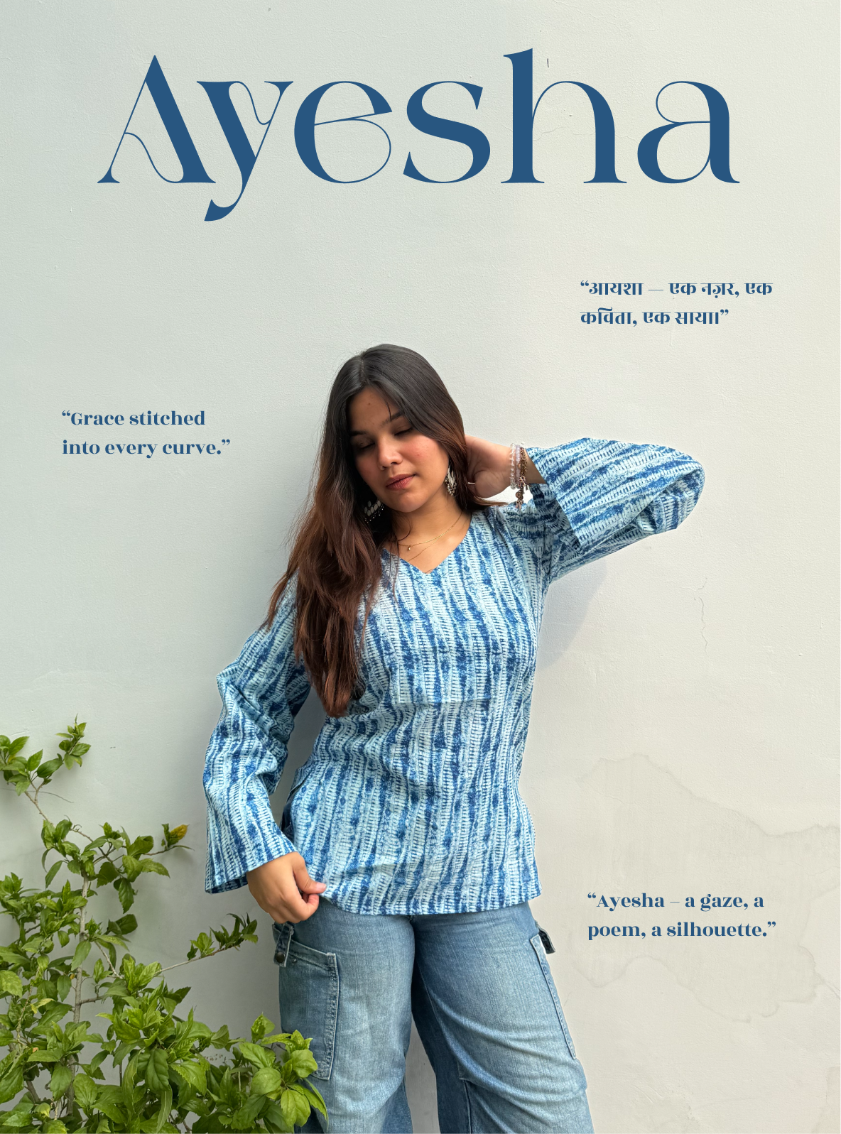 A portrait of poise and quiet rebellion, Ayesha is for the woman who speaks with her silence and stuns with her presence. With its flowing bell sleeves and refined structure, this kurti is a soft yet striking homage to timeless beauty — much like the unforgettable heroines of vintage cinema.