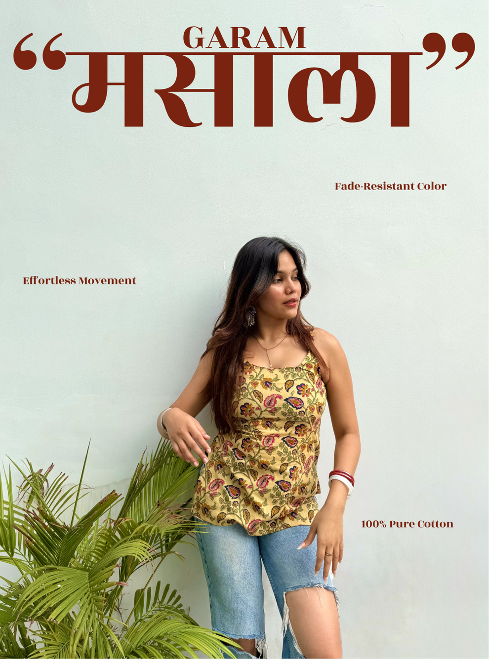 Hot, bold, and just the right amount of extra — the Garam Masala Sleeveless Short Kurti turns up the heat with every wear. A perfect blend of spice and simplicity, for the ones who dress like they mean it.