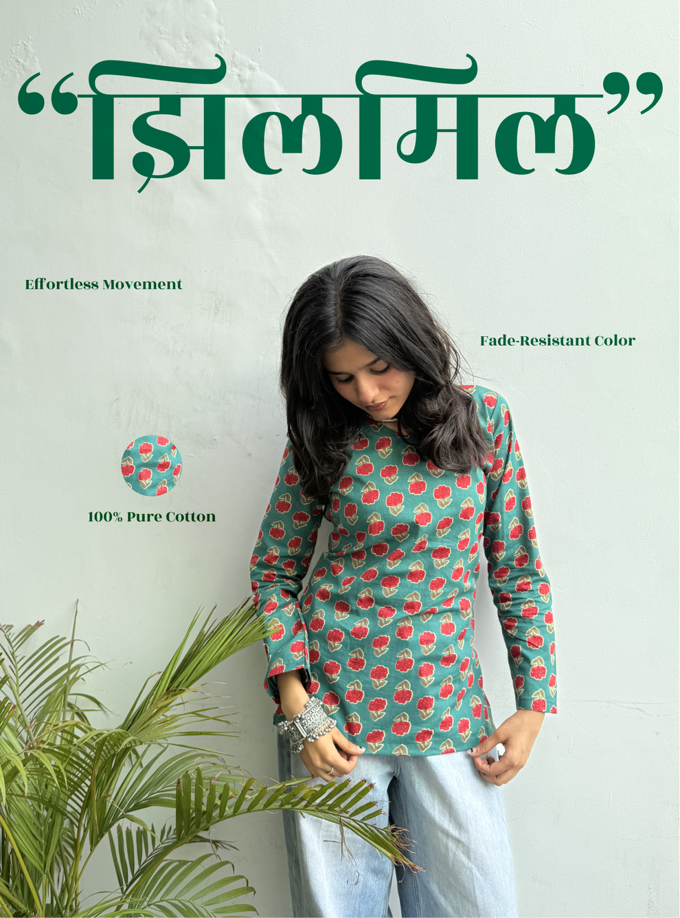 Glitter without the drama — the Jhilmil Short Kurti is all things sparkle and sass. With delicate accents and a flowy, breathable fit, it catches the light and the limelight. Perfect for festivals, brunches, or any moment that calls for a little extra shimmer.