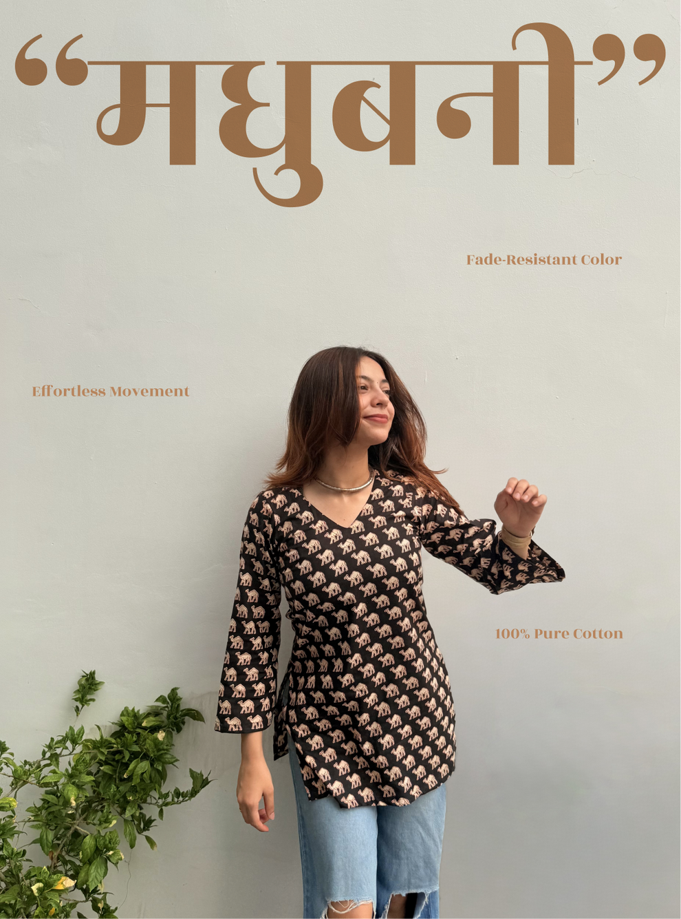 Madhubani - 3/4th Bell Sleeves Kurti by Evara