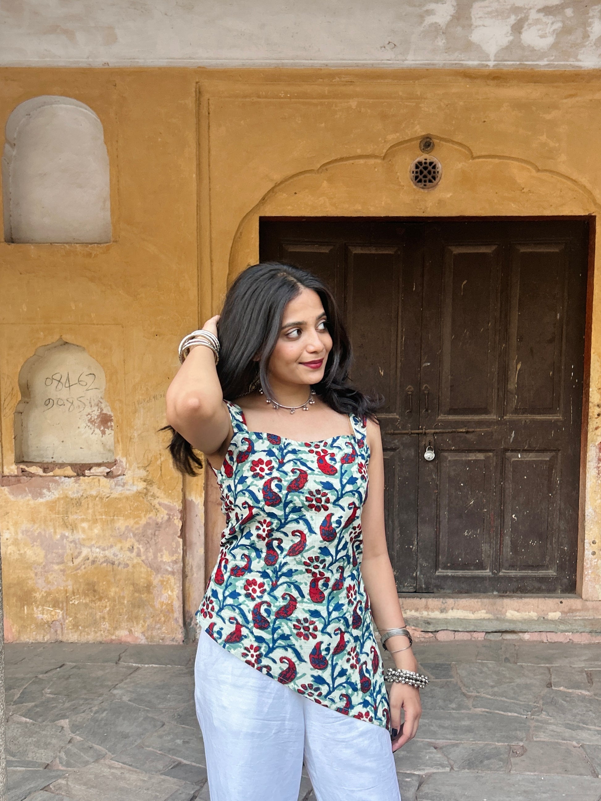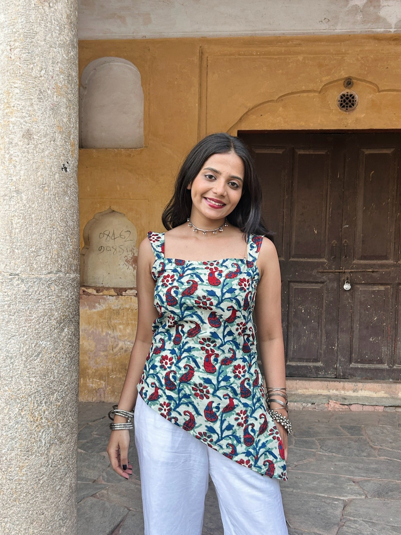 The cut-down kurti flare and dusk detail at the back add playful elegance and movement.